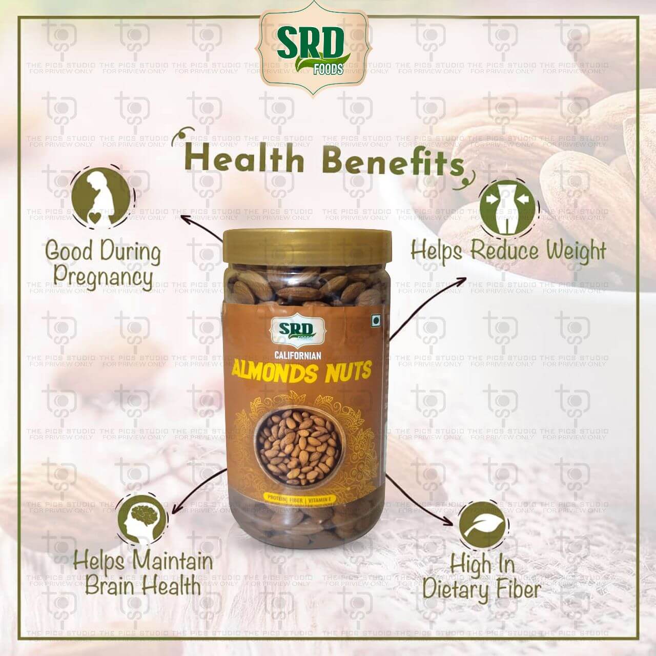 SRD Foods ki Californian almonds se mujhe bahut fayda hua hai. Ye healthy hain aur meri diet ka ek essential part ban gaye hain.
